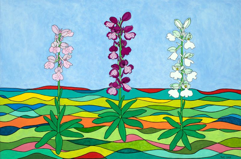 Für das Ausstellungsprojekt malte ich alle 22 Orchideenarten mit Acryl auf Leinwand. Es sind auch einige „Rahmenbilder“, die Naturschutzaspekte oder wissenschaftliche Aspekte thematisieren geplant. Das Ziel ist eine Ausstellung, bei der die gemalten Bilder gezeigt werden.
