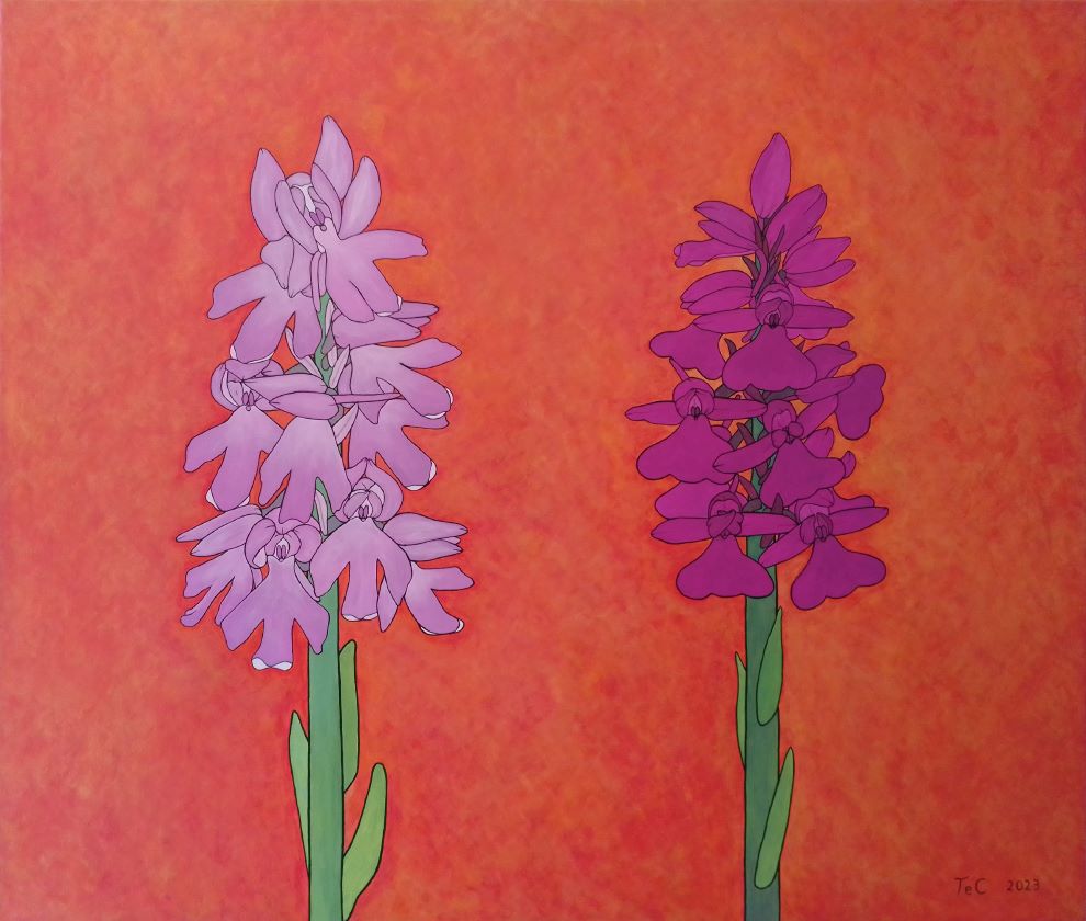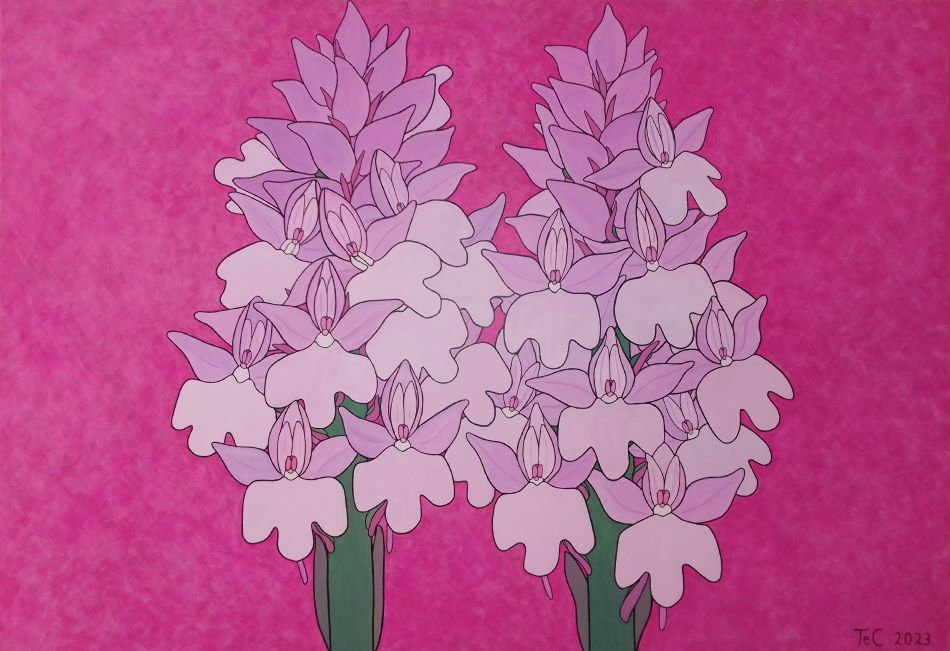 Anacamptis pyramidalis x Orchis militaris - hybrids - Christina F. Teibert - 2023; 100 x 85 cm; (all rights reserved)
